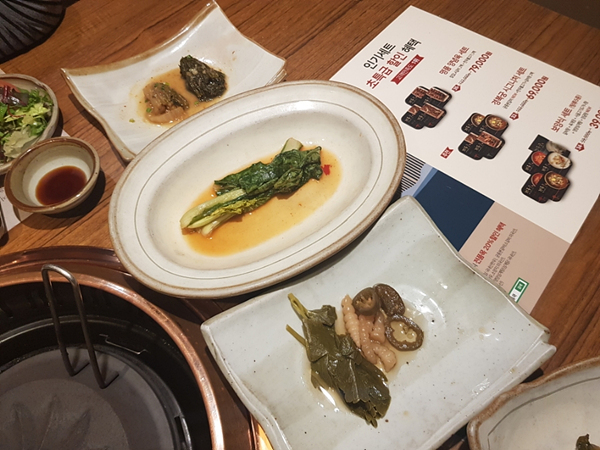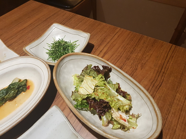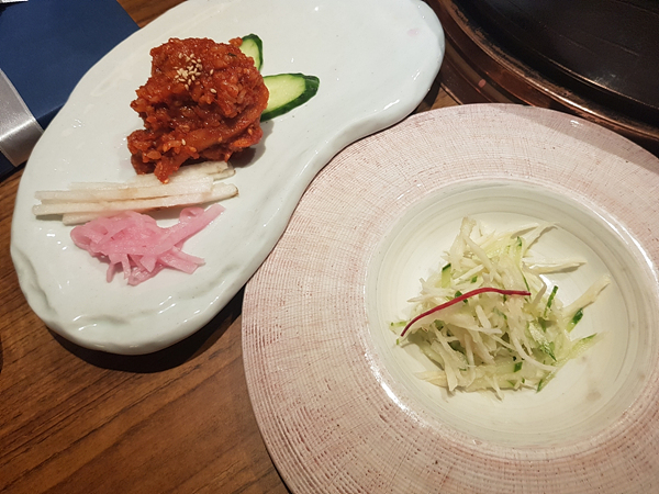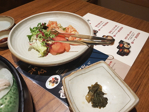 토마토샐러드, 더덕채유자 샐러드, 코다리식혜는 간도 괜찮고 고기 먹기 전 입맛 돋우기에도 좋았어요.