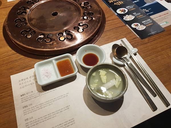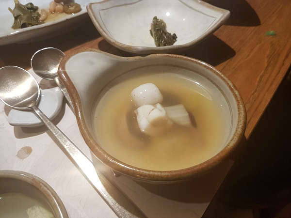 고기를 먹다가 중간에 생선탕이 나왔는데요.