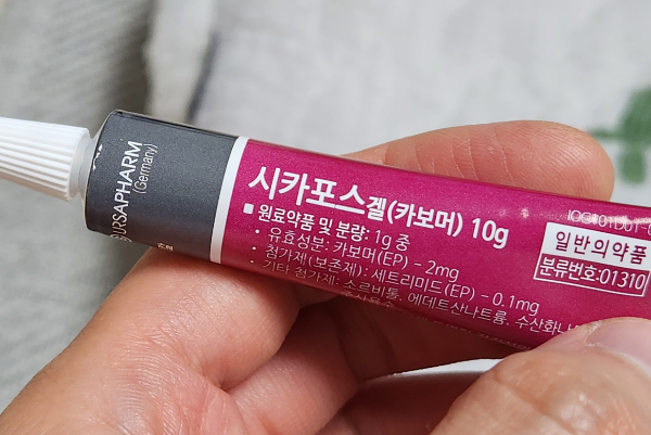 시카포스겔은 10g 용량의 튜브 형태로 포장되어 있는데요.