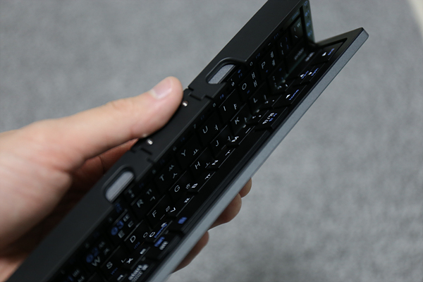 키보드를 완전히 펼친 상태라도 손바닥을 조금 가릴 수 있는 정도의 크기로 직접 보면 정말 작은데라는 말이 튀어나올 정도로 정말 작은 미니 키보드입니다.