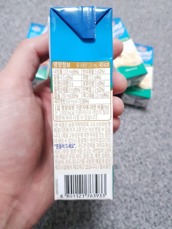 아몬드 브리즈의 맛은 맛없다는 느낌이 확 들긴 하는데요. 아침햇살이라는 음료의 맛과 비슷합니다.